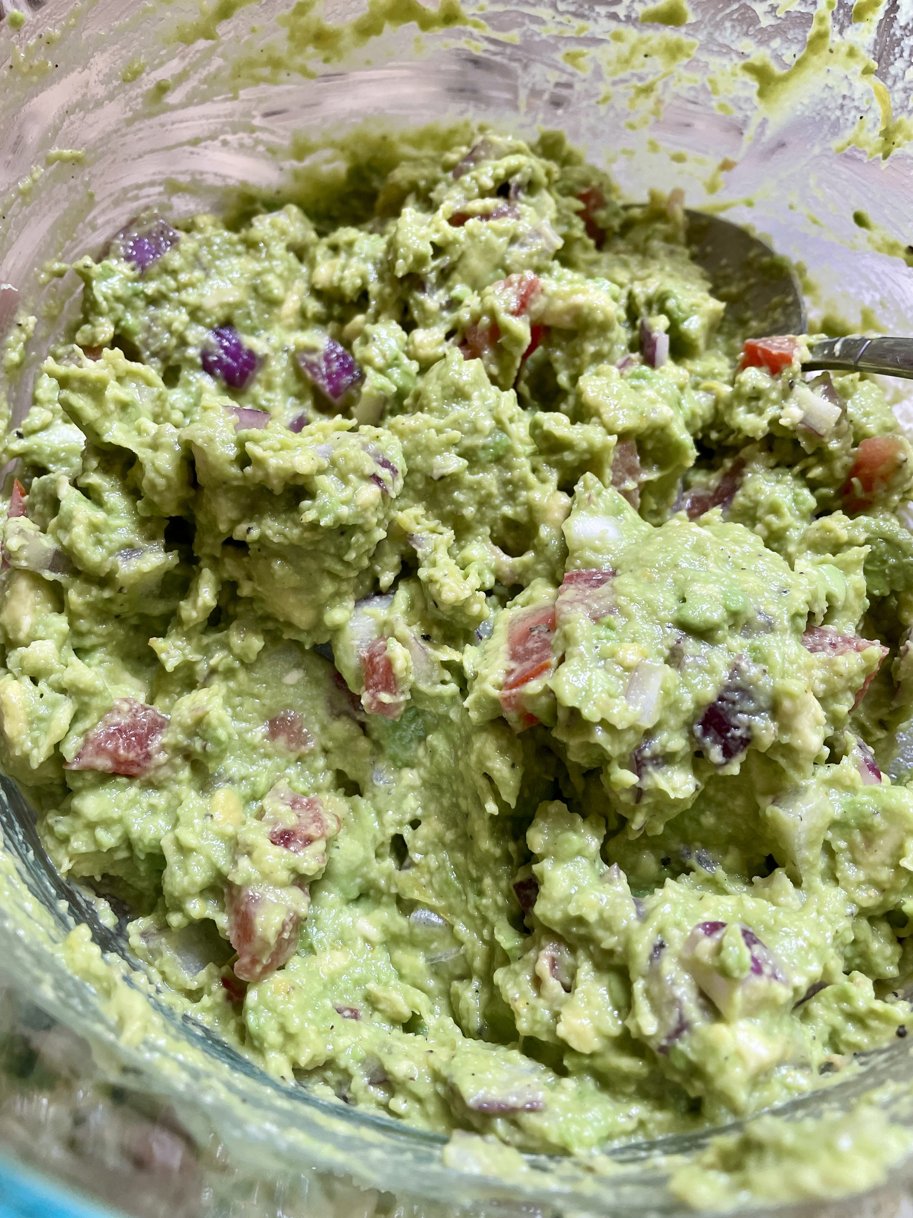 In the unlikely event of leftovers, this guac makes a fabulous topping for avocado toast. I enjoyed it on sourdough with a poached egg and a shake of everything bagel seasoning.
